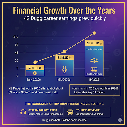 By 2026, 42 Dugg net worth 2026 sits at about $3 million. Streams and new music help.