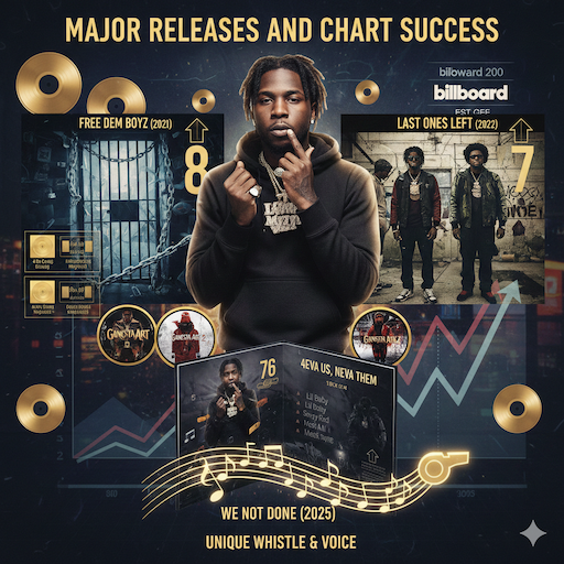 - Free Dem Boyz (2021): His fourth mixtape peaked at No. 8 on the Billboard 200. Singles like “4 Da Gang” with Roddy Ricch and “Maybach” with Future went gold.