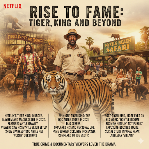 A spin-off, Tiger King: The Doc Antle Story, in 2021, dug deeper. It explored his operations and personal life. Fame surged, but so did scrutiny. True crime & documentary viewers loved the drama. The series compared him to Joe Exotic, highlighting rivalries.